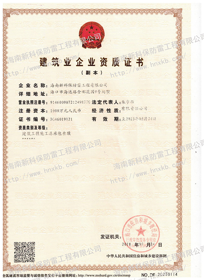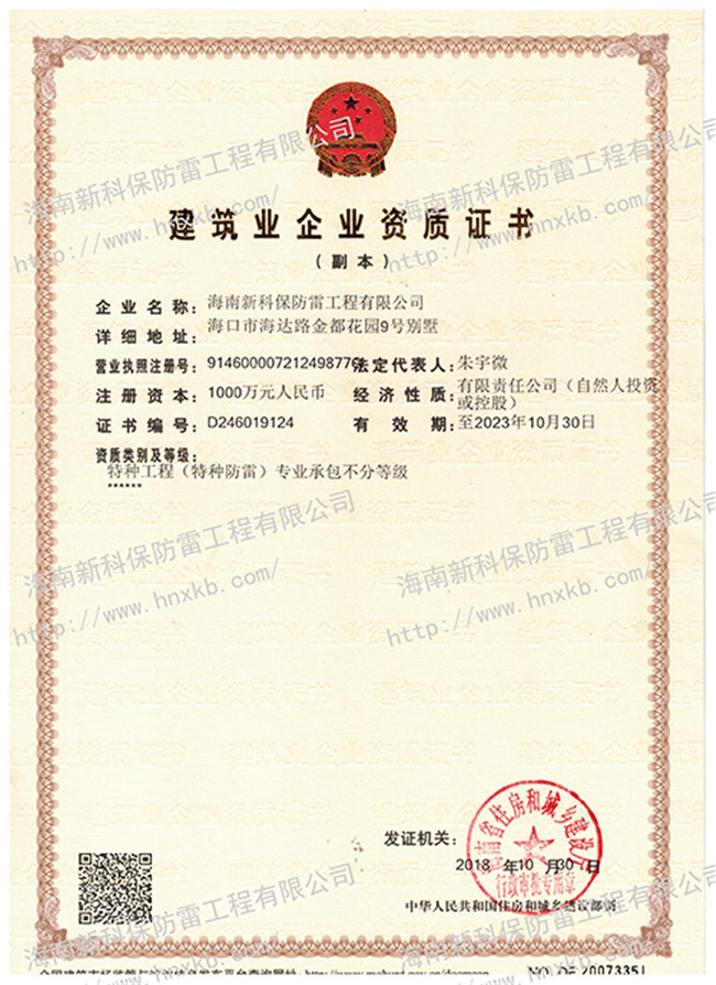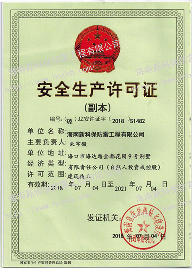 海南新科保防雷工程有限公司是一家集防雷技術(shù)研究、防雷檢測、防雷工程設(shè)計施工、安防監(jiān)控工程設(shè)計施工、建筑智能化施工、建筑水電施工于一體的高科技公司。在相關(guān)主管部門監(jiān)管下,致力于為客戶提供專業(yè)的安全防護、建筑智能化、水電技術(shù)等優(yōu)質(zhì)產(chǎn)品和工程服務。